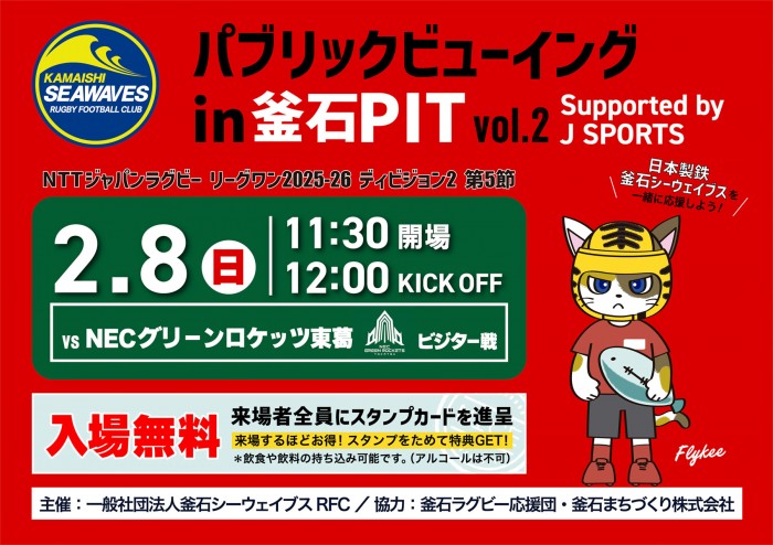 日本製鉄釜石シーウェイブス パブリックビューイング in 釜石PIT Supported by J SPORTS vol.2 NECグリーンロケッツ東葛戦